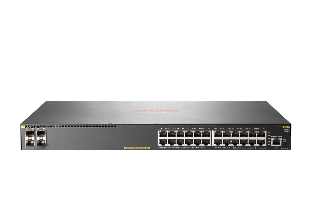 A série de switches Aruba 2930F foi projetada para o cliente, criando locais de trabalho digitais otimizados para usuários móveis. Esses switches de acesso de Camada 3 são fáceis de implantar e gerenciar com ferramentas avançadas de segurança e gerenciamento de rede, como Aruba ClearPass Policy Manager, Aruba AirWave e Aruba Central baseado na nuvem. Virtual Switching Framework (VSF) fornece escala de empilhamento e simplicidade para borda empresarial, PMEs e filiais. O 2930F oferece o desempenho e valor com suporte para roteamento RIP, OSPF de acesso, uplinks 10GbE, PoE+ de até 740W, QoS robusta, e não requer nenhum licenciamento de software.